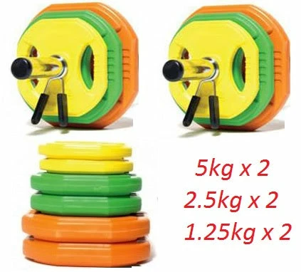 - (2pcs x 5kg Orange), (2pcs x 2.5kg Green), (2pcs x 1.25kg Yellow) plates