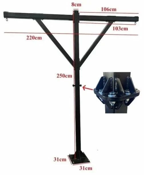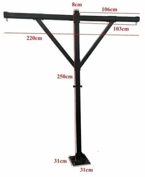 Commercial Boxing Frame must be bolted to the floor. Comes with Dyna Bolts Please consult a build for the best fixing method. An incredible heavy bag hanging option for home or professional gym use. Extra heavy-duty powder-coated boxed steel is unbelievably sturdy and built for intense action. Crafted to support heavy bags to 70kg. 12″ x 12″ base is pre-drilled for attaching directly to the concrete floor, which virtually eliminates any noise, vibration or movement. Vertical design occupies little floor space, yet allows full 360-degree access around the bag.