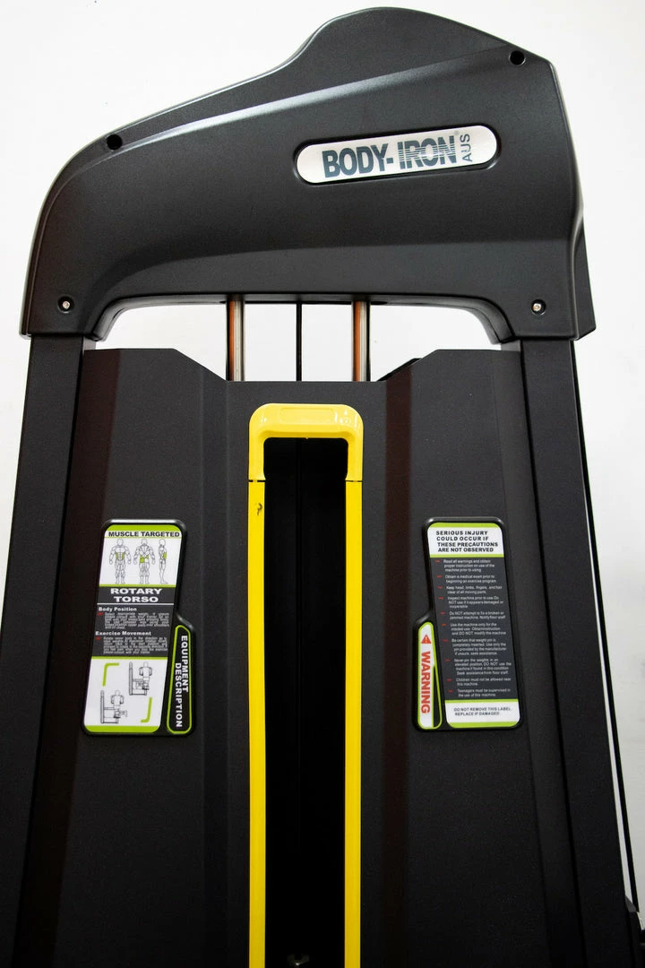 Training your outer muscles isn’t always easy, but it is now with the Body Iron Commercial Platinum Rotary Rorso Machine. Set your weight and rotate left to right to work your obliques, hip abductors and abdominal muscles.