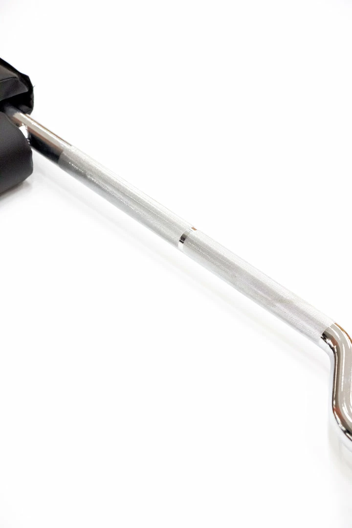 Designed to be seated high on your traps, this barbell shifts the weight forward, mimicking a front squat movement. This encourages you to maintain a more upright positioning, improving your posture and reducing the stress on your lower back.