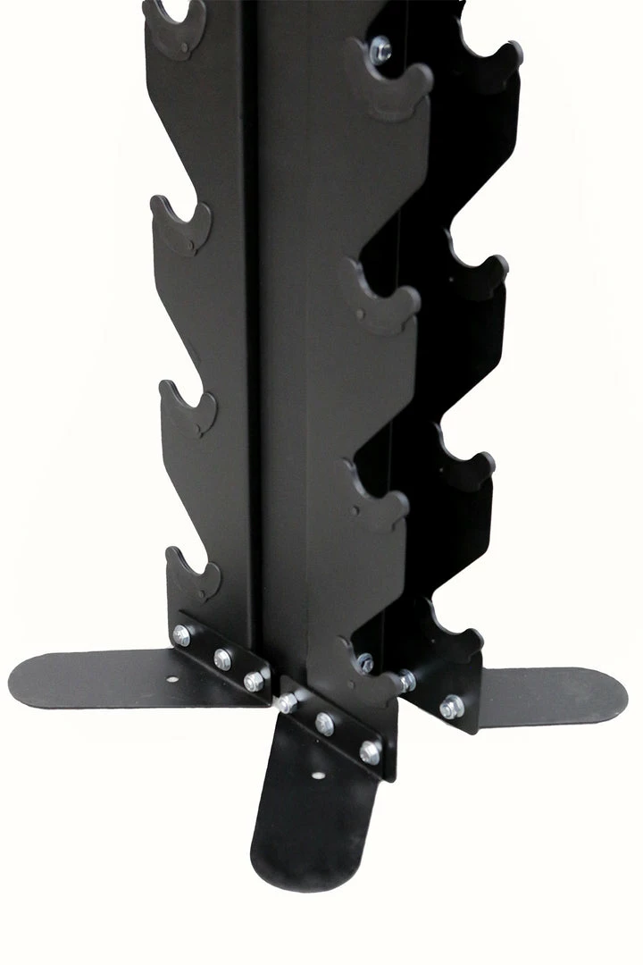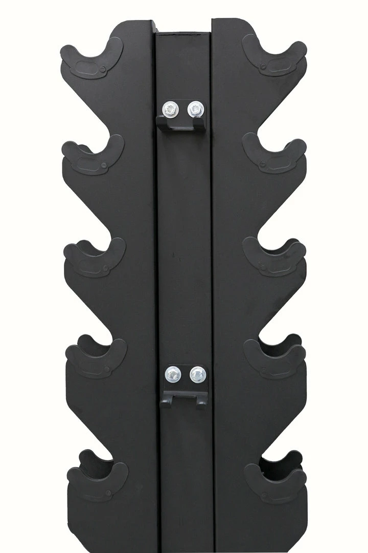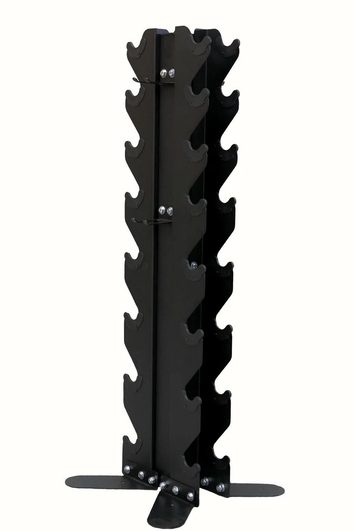 This vertical dumbbell rack holds 10 pairs of 1, 2, 3, 4, 5, 6, 7, 8, 9, 10kg perfectly. The spacious design allows you to easily remove or put back the dumbbells you require without interference from other pairs.