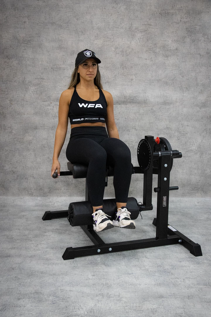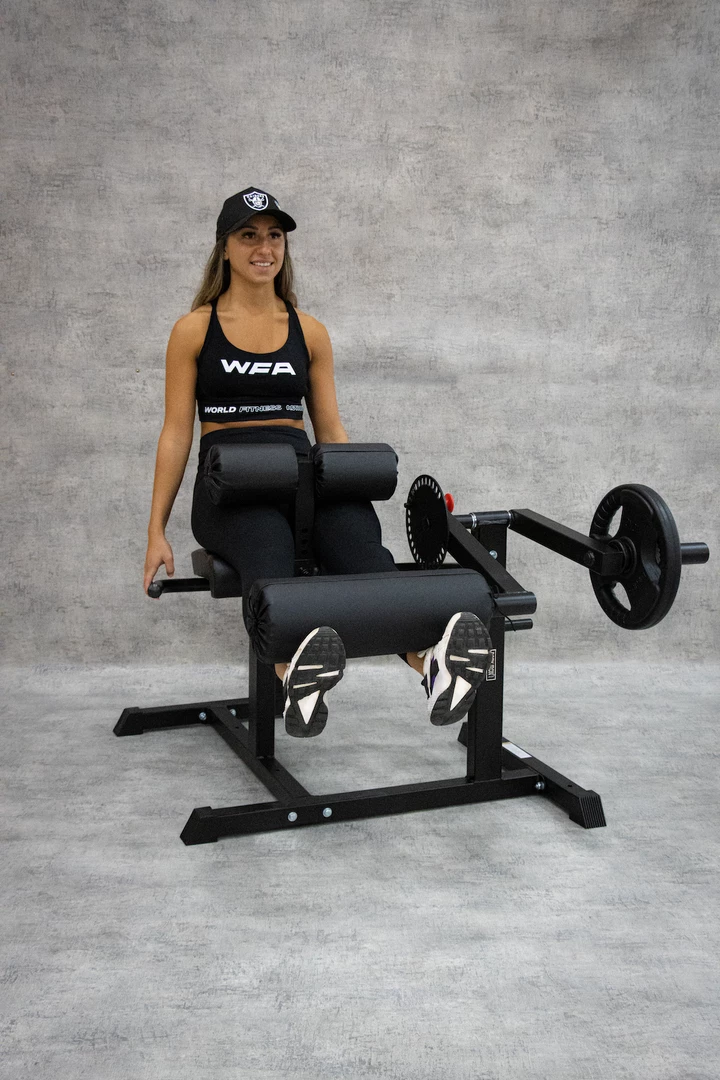 To perform this exercise correctly lower the lifting arm and position your legs behind the oversized roller. Stack on some weights (always double checking everything is securely locked in place) before extending your legs until they are straight, holding the tension in your quads. Slowly lower them back down and repeat.Â
