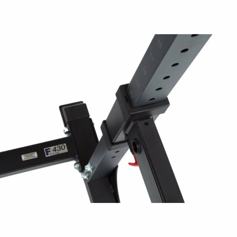 Featuring an extra wide, walk-in design for ease of use and adjustable spotter arms for your safety, this is the perfect lifting system for lone training.Â