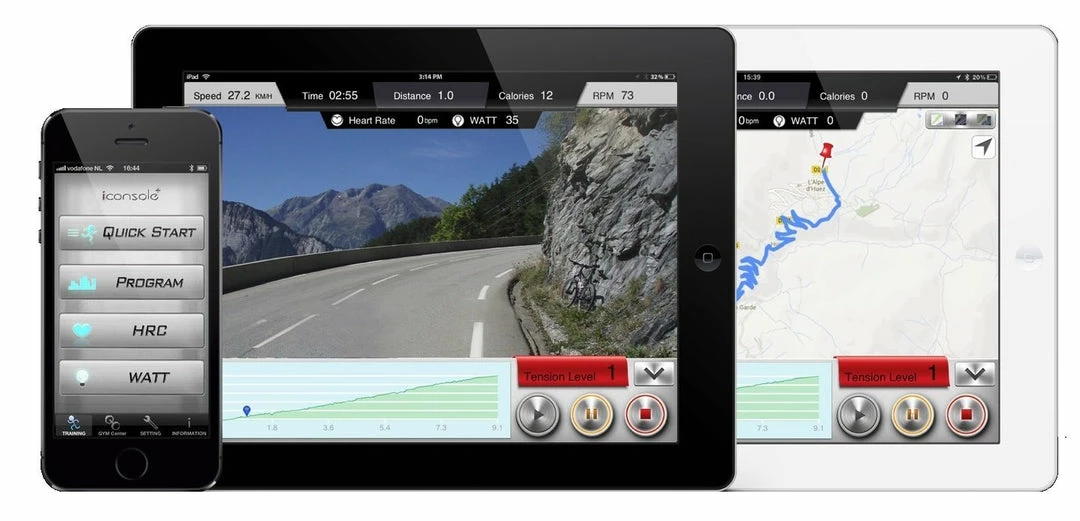 Heart Rate Monitoring: through handlebar contact and telemetry receiver (chest belt optional).