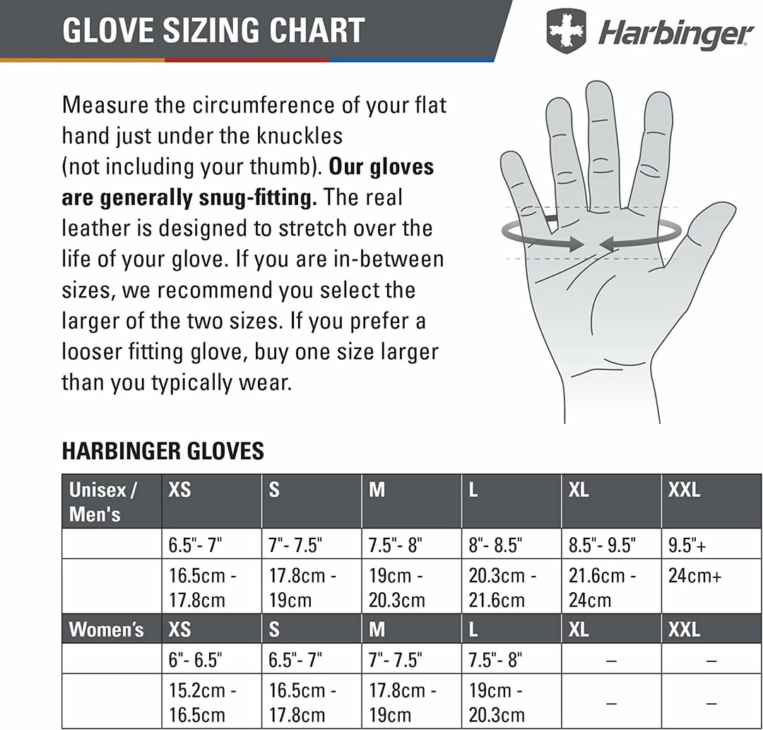 Harbinger Training Grip Gloves feature TechGel comfort padding that moulds to the hands, protecting them from the stresses of weightlifting and training while maintaining flexibility and grip sensation. Integrated Harbinger wrist wraps help stabilize wrist joints with adjustable pressure to keep wrists in the proper position when weightlifting. The innovative curved finger design of Harbinger Training Grip Gloves offers a natural, flexible, and comfortable fit and the new vented design on the back of the hand wicks away moisture and increases breathability.