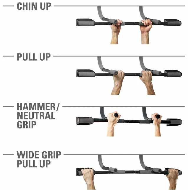 Wide grip handles for 4 grip options to perform normal, wide, close, and hammer grip pullups