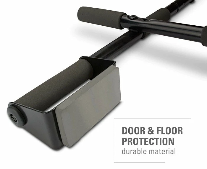 The 300-pound weight capacity makes it safe to use with a weight vest. Placed on the floor, the Multi-Gym Pro can be used for sit-ups, pushups, and dips; padded handles provide comfort and help to ensure correct form. It also has a patented door frame guard using a unique flat design with thick foam pads to help protect doorframes.