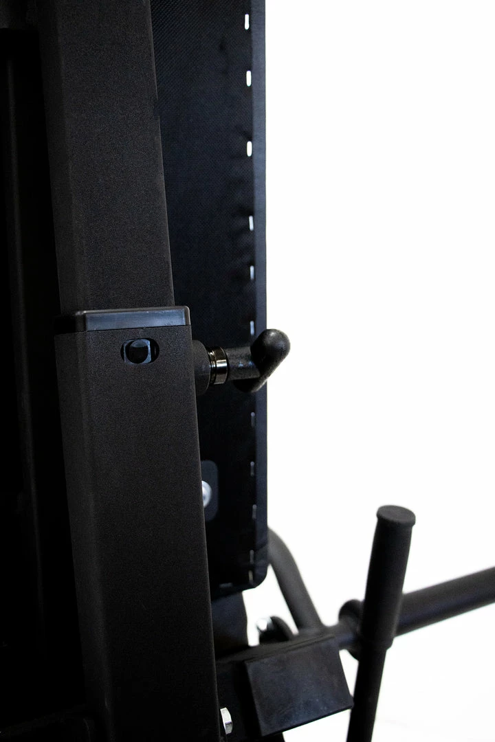 Safety always comes first, so before you begin loading up the weight plates make sure the safety pin in front of the seat is secured into a position that offers your desired range of motion. Then, adjust the back pad to match your height, and ensure the safety mechanism (large handle on the right hand side of the seat) is secured.Â