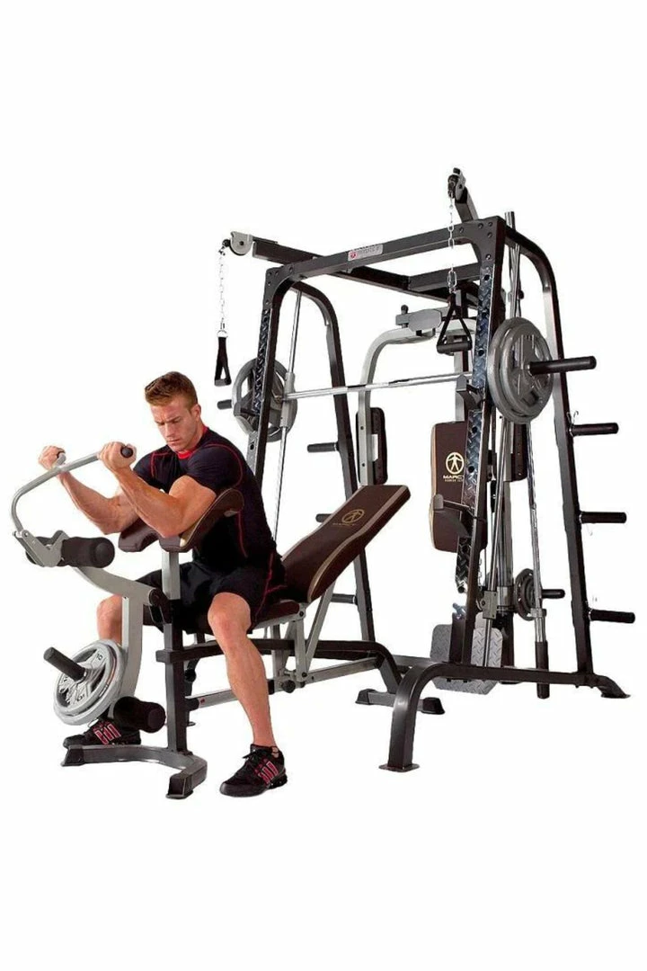 The Marcy Cage MD-9010G is not your regular smith machine. Featuring ‘ultra-glide’ linear bearings and a frame structure with a 7° slant, you won’t find another smith machine that moves as smoothly whilst offering the most natural lifting pattern.