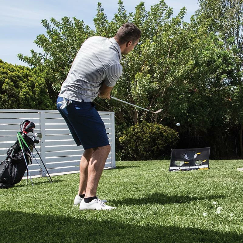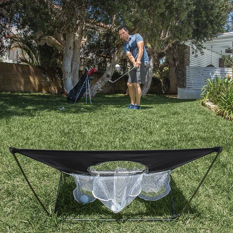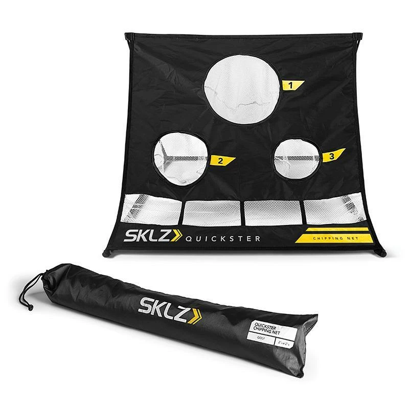 Practice your short game anytime, anywhere with the Quickster Chipping Net. The net features three different sized target holes and a ball-catching slot at the bottom for missed shots. Perfect for use with regular or practice golf balls in the home, garage, basement or backyard.
